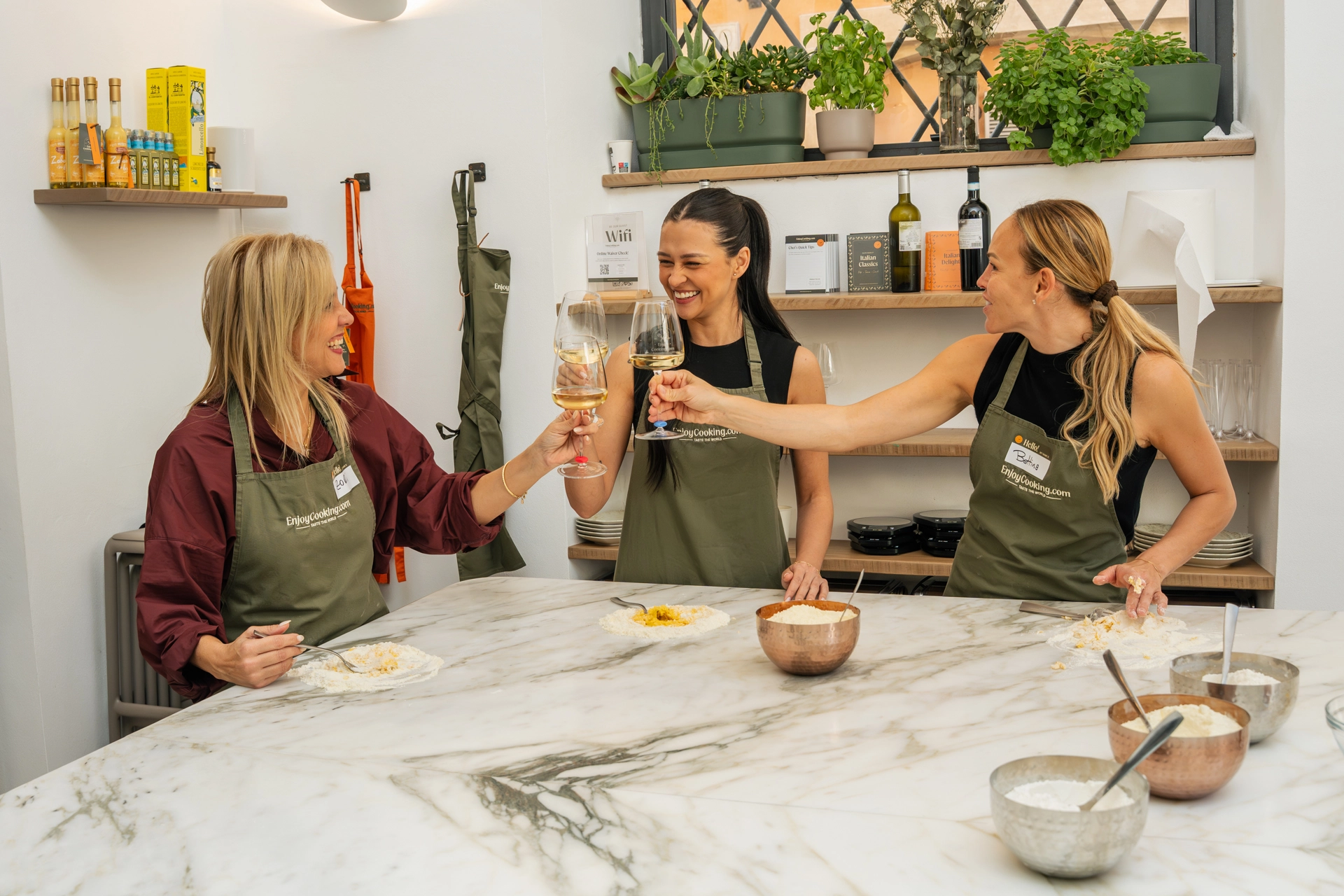 The class fee includes everything you need for the experience: all cooking materials and equipment, fresh ingredients, aprons to use during the class, the full meal you prepare together, fine Italian wine and soft drinks.