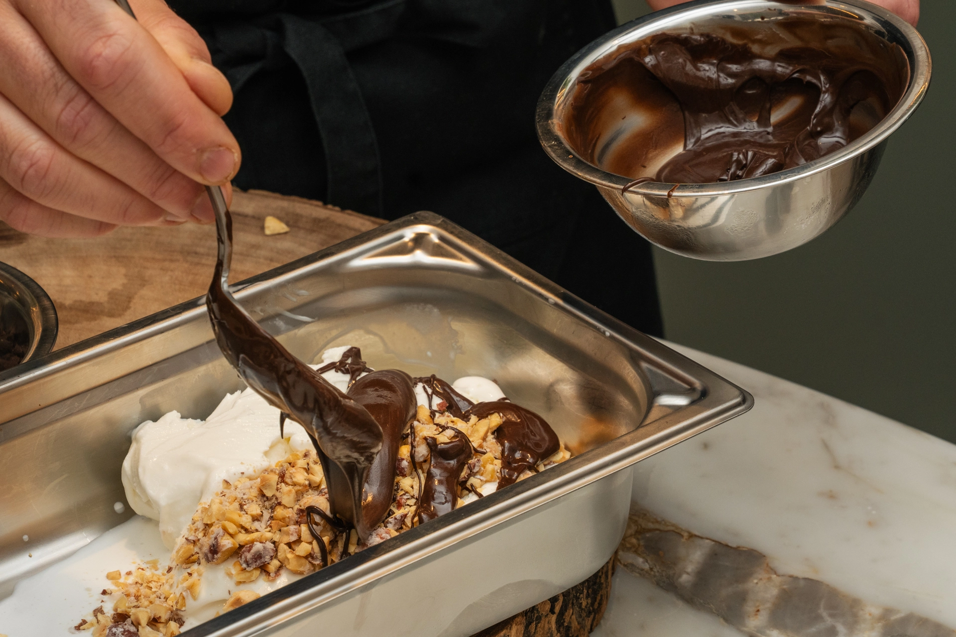 Blend creamy ricotta with dark chocolate and toasted hazelnuts to create a smooth, refined gelato; the perfect, sophisticated conclusion to an unforgettable tasting experience.