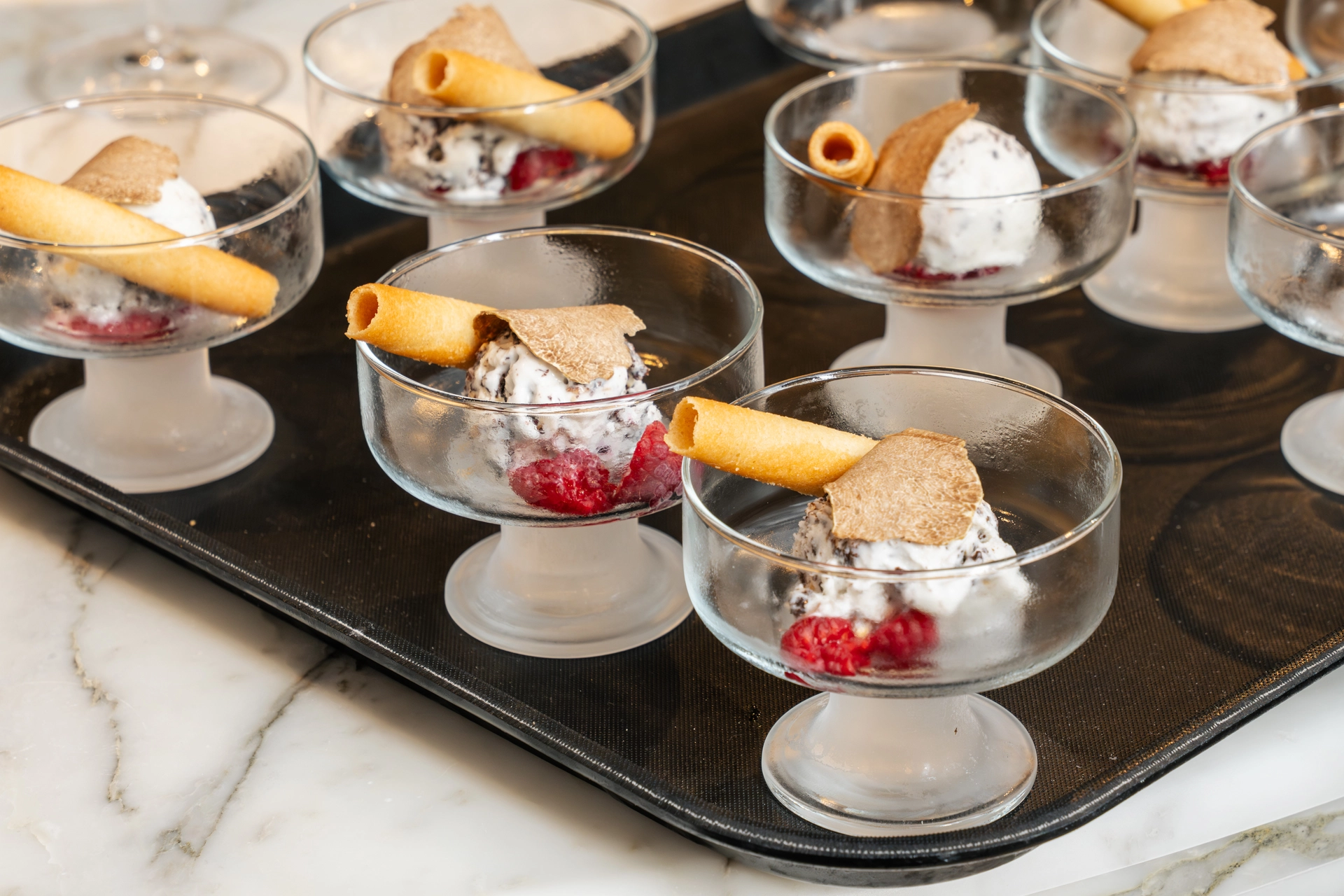 Prepare ricotta gelato enriched with chocolate and hazelnuts for an elegant finale.